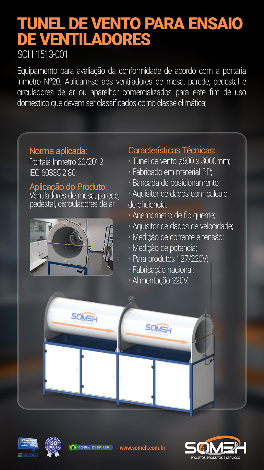 Túnel de Vento para Ensaio de Ventiladores de Mesa