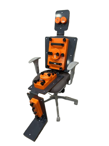 O “boneco de teste” é utilizado para testes de durabilidade de camas com acionamento elétrico. Este equipamento é fabricado com um material liso e rígido. Suas seções são conectadas por dobradiças que permitem movimento livre.